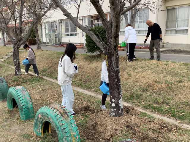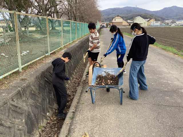 6年生による奉仕作業を実施しました。 今回は2回目で、学校周りの排水溝の清掃と桜の木の肥料まきをしました。 たくさんの桜の木に肥料をまいたり、排水溝のたくさんの泥や落ち葉をきれいに掃除したり、大変よくがんばっていました。 仲間と協力して、気持ちよく働く姿。さすが室場小の6年生です。 卒業まであと14日です。