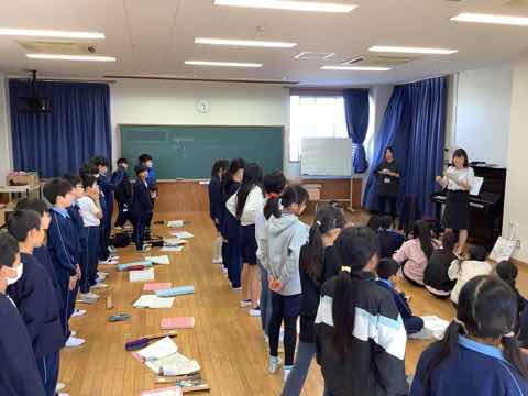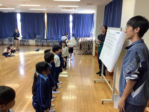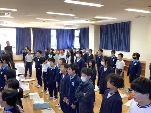 体育館が使えない時は多目的ホールを使って全体練習をしています。歌練習や通し練習をして精度を高めていっています。