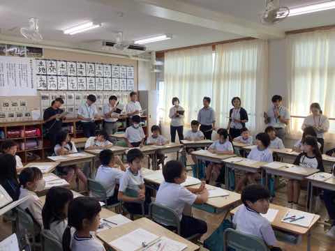市内の先生が集まって4年生の総合の授業研究を行いました。地域に残る「おまんと祭」」「棒の手」を守っていくにはどうしたらよいかを話し合いました。