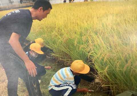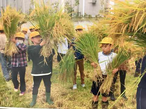 かかしたちに守ってもらった稲を刈りました。初めての経験に苦労しましたが、無事に行うことができました。