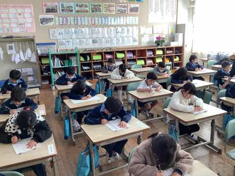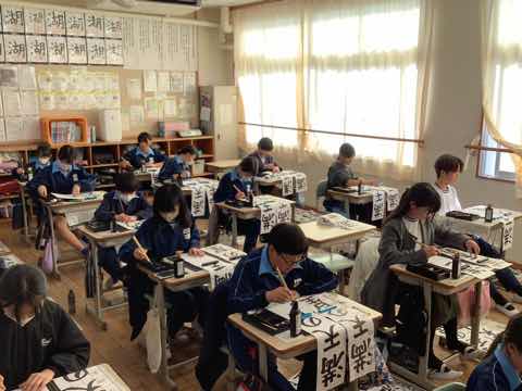 競書会を行いました。全校児童が集中して字を書く雰囲気の中、今までの練習を生かし、全集中で取り組みました。自分と向き合ういい時間となりました。