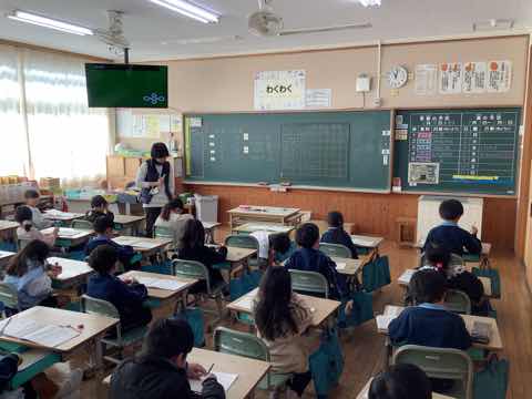 1年生の算数の授業です。0の入った計算をしたり、ボーリングのピンを数えたりしながら、楽しく学んでいます。