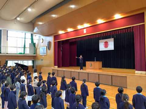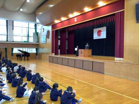 3学期が始まりました。全校で体育館に集まり始業式を行いました。はじめに6年生が意見発表を行いました。校長先生からは、3学期は次の学年の0学期です。目標を持ってがんばりましょうとのお話でした。式後には表彰の披露を行いました。