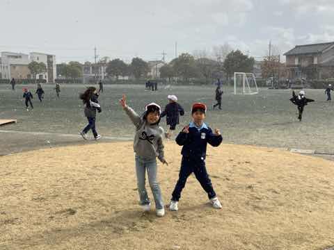 中畑小学校に雪が降りました。滅多にない天気に子どもたちは大騒ぎでした。寒い中ですが外に出て雪と一緒に遊んでいました。