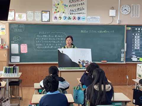 本校では読書週間が始まっています。読書に親しむために、司書さんやブックさんによる読み聞かせをしてもらっています。