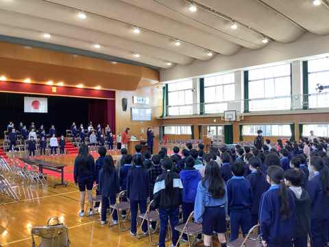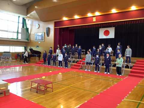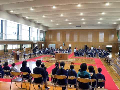 卒業式の全校練習が始まりました。会場は先日5年生がチームワークよく立派に設営してくれました。今回の練習は席の確認と歌練習でした。練習から全力でがんばる中畑っ子です。