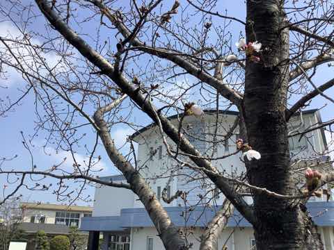 正門の桜に花が咲き始めました。学校に足をお運びの際には正門前の桜をご覧になってください。