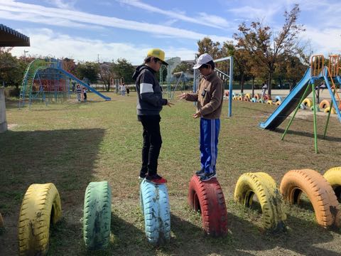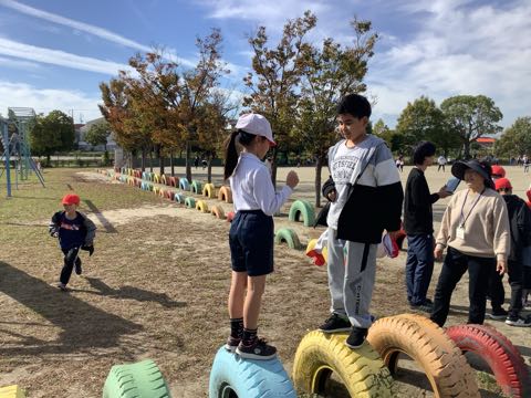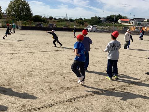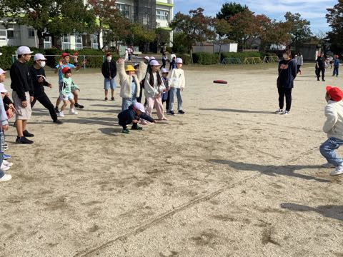 今日は、秋晴れの中、全校外遊びがありました。 1、6年生は、ペア学年で「ドッジビー」「氷おに」を行いました。4年生は、「ドッジボール」「だるまさんがころんだ」「鬼ごっこ」。2年生は、「けいどろ」。5年生は、「ドッジボール」「けいどろ」。3年生は、「けいどろ」「かわり鬼」。ひまわり組は、タイヤじゃんけんを行っていました。先生も一緒に遊びました。たくさんの笑顔が見られました。