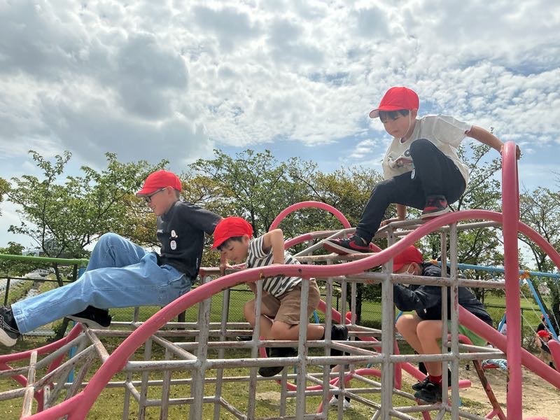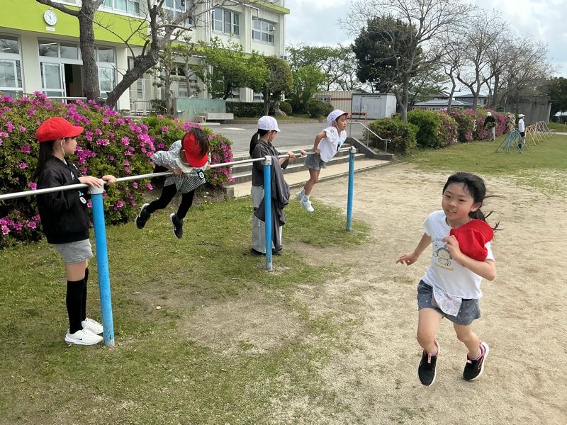 今年度初めての外遊びが行われました。ペア学年で、ドッジボールや鬼ごっこ、遊具などで楽しんで、コミュニケーションをとることができました。 来月の外遊びも楽しみです。