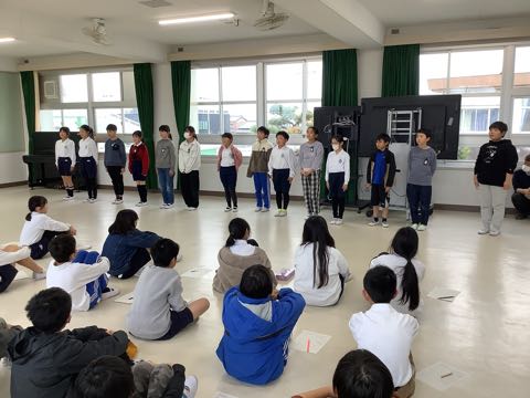 町内会長さんの伴奏で、校歌の合唱をしました。子どもたちと来賓の皆様との心の関わりの輪を作ることができました。