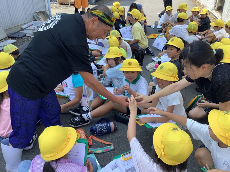 みんなの考えた質問に答えてもらいました。最後には、お土産もいただき、とても嬉しそうでした。