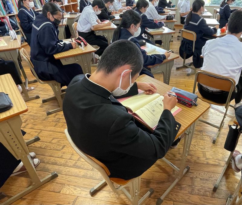 2年生は、「人生の先輩に生き方を学ぶ会」がありました。料理やスポーツインストラクター、芸術家、保育士など様々な仕事の方に来校いただきました。やりがいをもって働く人生の先輩方から、「働くことの大切さ」を学び、自分の将来について考えることができました。美容師の方の実演を見て、苦戦しながら三つ編みをつくる男子の姿が印象的でした。講師の方々、貴重なお話をありがとうございました。