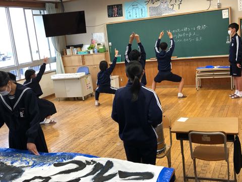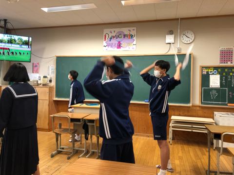 団員による応援練習がありました。応援合戦の振り付けを、実際に踊りながら練習しました。みんなに教えるために、振り付けを覚える姿はとても生き生きしてました。