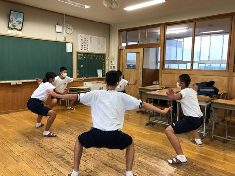 コロナ感染拡大防止のため、廊下のいすには、距離を保つために、テープがはってありました。1学期にベンチに貼ったテープがぼろぼろになってきました。そこで保健委員さんが中心となり、新たにテープを張り直してくれました。みんなで感染を防ごうとする姿は立派です。