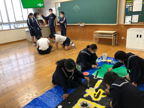 各クラス、団長が中心となり応援練習・旗の作成に熱が入っています。