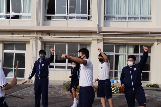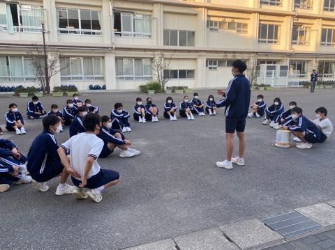 応援合戦へ向けたクラス全体練習が始まりました。一年生にとって初めての応援合戦でなかなかうまく踊れない中、団員がグループをつくり、踊りを一から丁寧に教えていました。初めての応援合戦に向けて、よい姿が多くみられました。