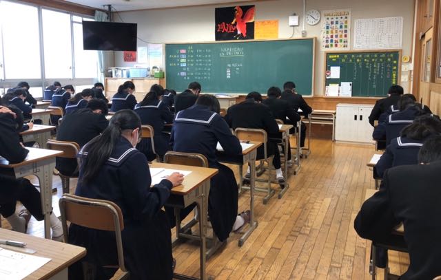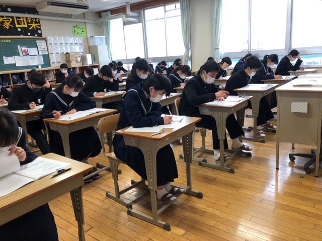 これまでの勉強の成果を確認する良い機会です。朝から5時間、入試の雰囲気で真剣に取り組みました。明日からは、私立高校および専修学校の推薦入試の面接練習も本格的に始まります。