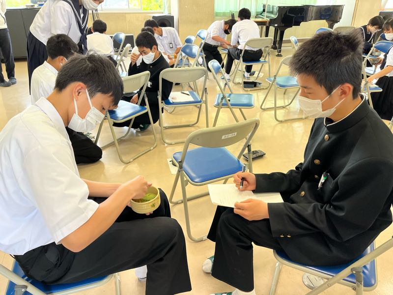本日西尾茶実行委員の生徒たちが、明日の2年生の茶会に向けてお茶を点てる練習をしました。