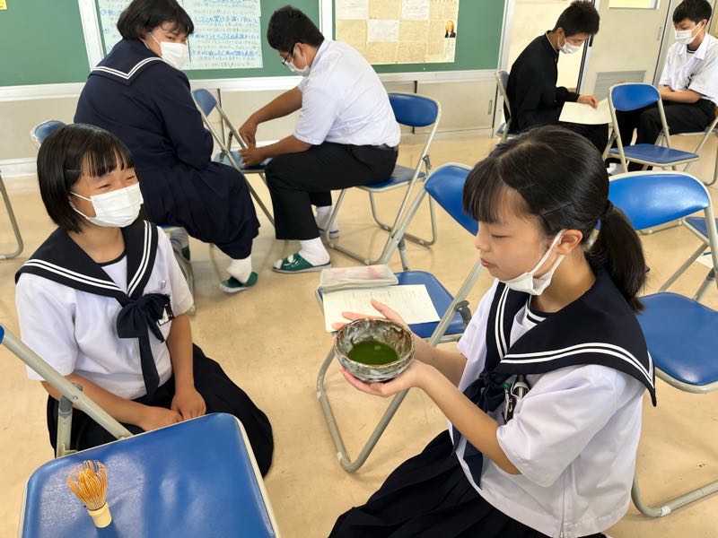 友だちとお互いにお茶を点て合いながら、西尾市伝統の抹茶をおいしくいただきました。