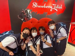 トリックアート迷宮館では視覚のパニックにあい、歓声をあげる生徒がいました。普段とは違う見え方がとてもおもしろかったです。熱海城から見る景色は熱海の街並みとオーシャンブルーの絶景に圧倒されました。