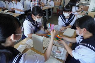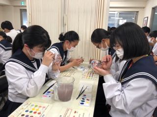 ステンドグラスの写真立て作り体験を行いました。さまざまな色を用いて、個性豊かな写真立てが完成しました。修学旅行の写真を入れ、大切にしてほしいです。