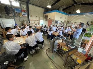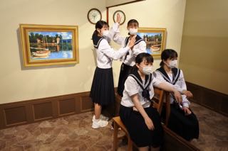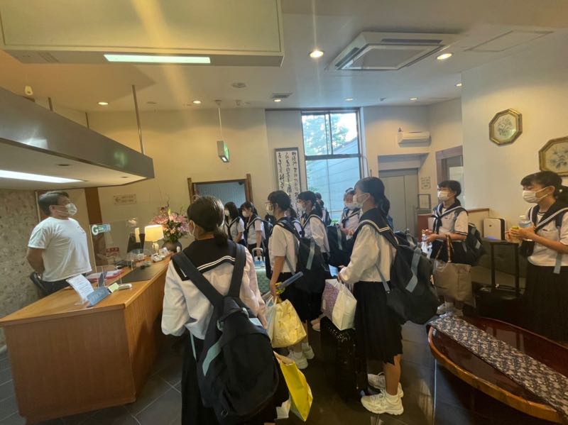 昨晩はオーナーさんや級友と楽しいひとときを過ごし、たくさんの思い出ができました。天気にも恵まれ、修学旅行最終日が始まりました。各クラス別体験学習場所に向かっています。
