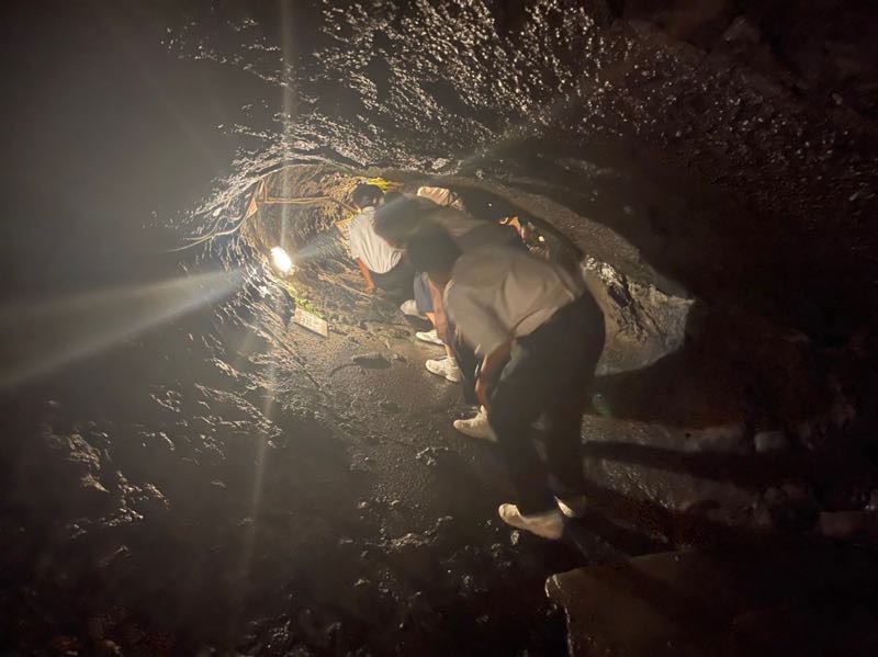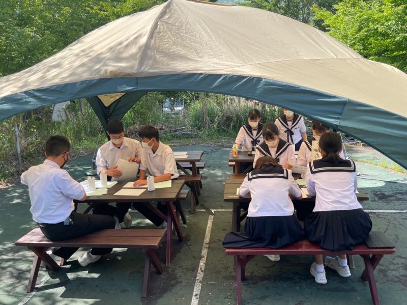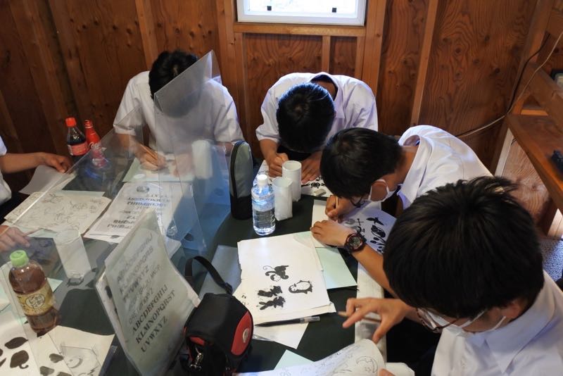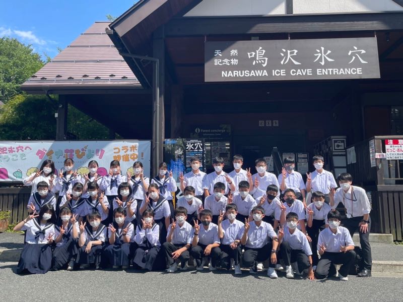 半袖で気温0度の鳴沢氷穴に元気に入っていきましたが、出口では寒すぎて凍えている生徒が多くいました。しかし、幻想的な世界を体験することができました。サンドブラスト体験では、細かい作業に苦戦しながらも思い出に残る作品を作り上げることができました。