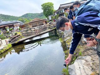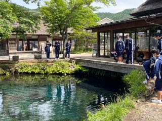世界遺産構成資産である忍野八海を見学しました。吸い込まれそうなきれいな涌池に歓声を上げ、写真をたくさん撮りました。富士山もきれいに見えています。