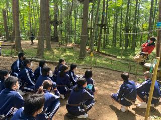 フォレストアドベンチャー富士に来ました。自分の体は自分で守る。係の方の説明をよく聞いて、「高いところが怖い」と言っていた生徒も安全に楽しむことができました。「本当によい子達ですね」と言ってもらえて、みんなのよさが伝わったことがうれしかったです。