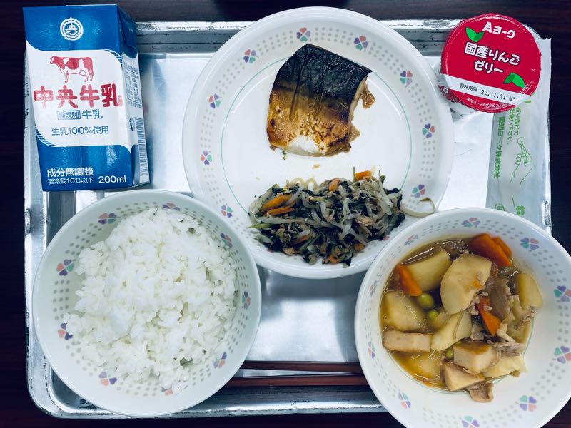 今日は、「食べるぞ、秋!愛知を食べる学校給食の日」の献立でした。地場産物を中心とした、秋が旬の食材を多く使用して、皆さんに秋を感じてもらえるよう考えた献立です。