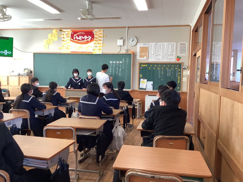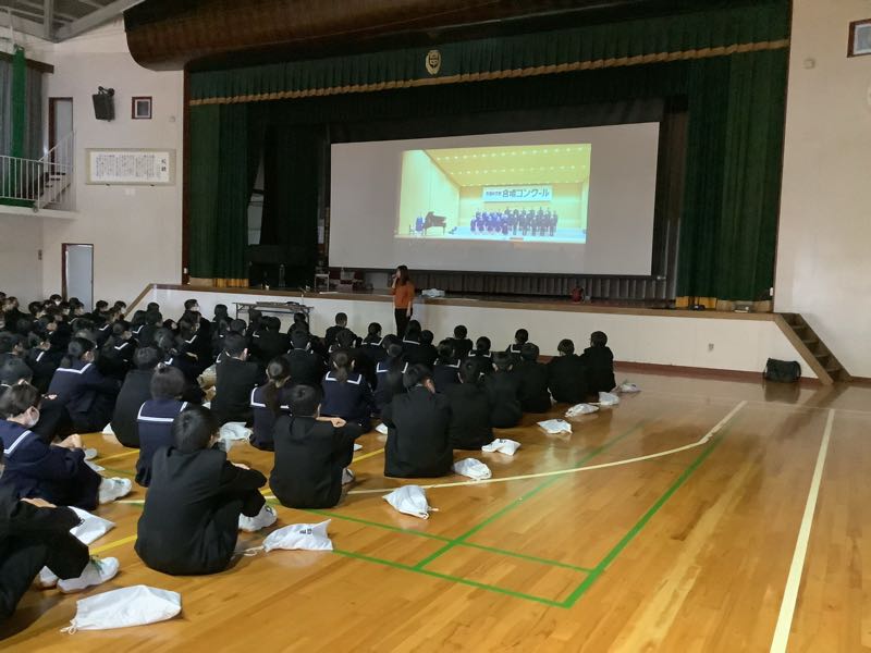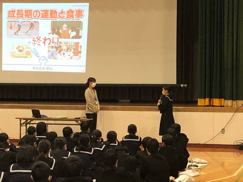 給食専門委員から今日の給食についての紹介がありました。「身近な食材に目を向け、秋の味覚を味わいましょう」と伝えると、クラスメイトは拍手で応えていました。