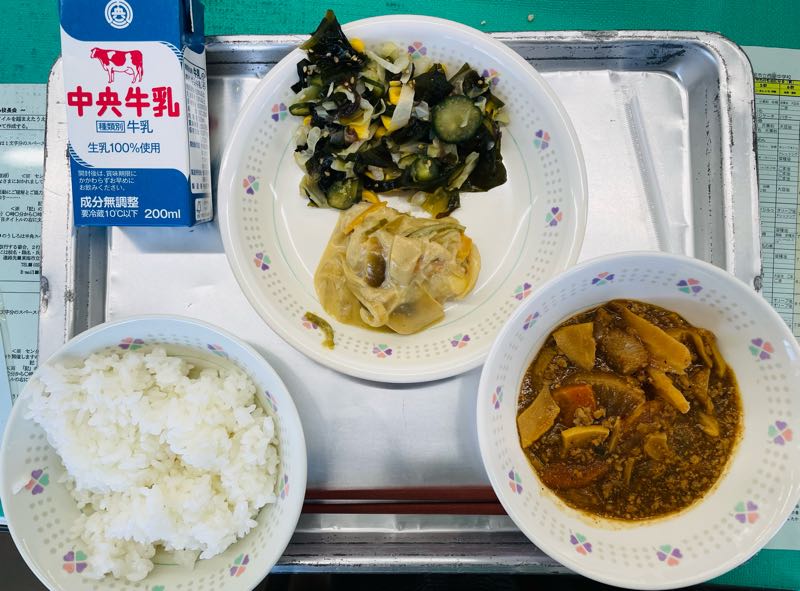 献立ご飯、牛乳、鶏肉のみそマヨネーズ焼き、海藻サラダ、マーボー大根今日は、マーボーあんで大根を煮ました。みずみずしい春大根にマーボーあんが染みておいしく煮えていました。豆腐の代わりに季節の野菜をマーボーにすると、野菜をたくさん食べられるのでおすすめです。生徒達もよく食べていました。