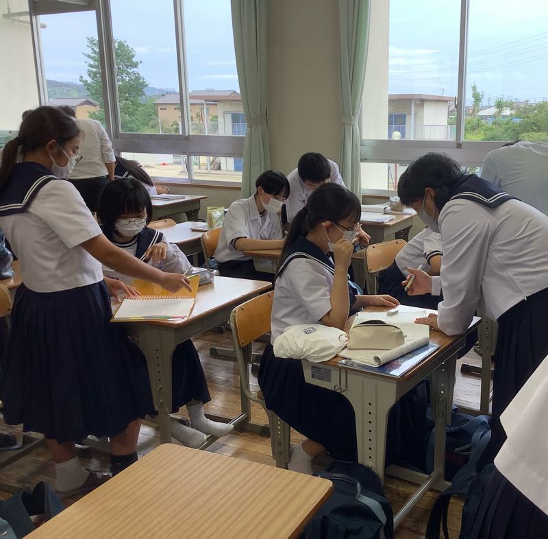 今年度初の定期テストに向けて、昨日と今日の2日間、スタディタイムを行いました。先生に質問をする姿だけでなく、生徒同士で教え合う姿もたくさん見られました。わからない問題を分からないままにしないという、テスト勉強に対して前向きな姿勢が感じられました。来週からの定期テストにも期待がもてそうです。