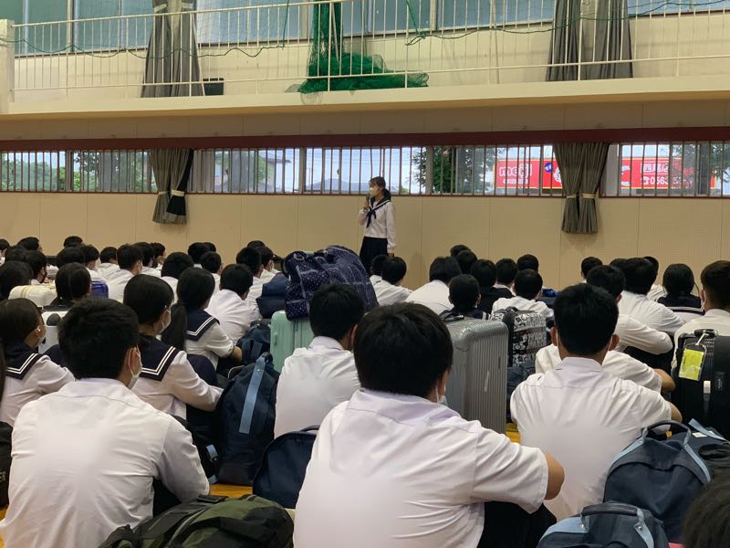 2泊3日の修学旅行も終わりを迎え、無事に帰着いたしました。帰着式では、3日間お世話になった旅行会社の方々や引率の先生方に対してお礼を伝え、最後まで立派な姿を見せました。
