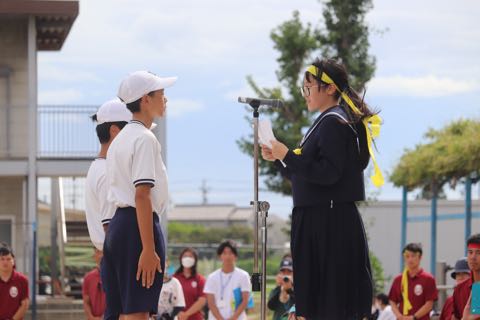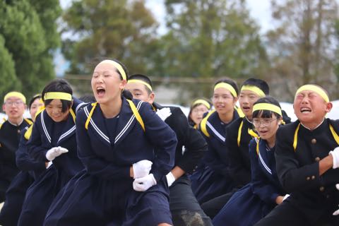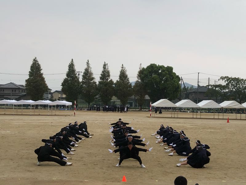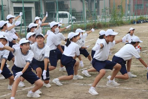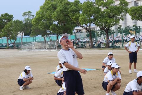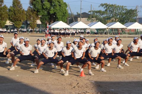 本日の体育大会は、グラウンドの状態が悪いため、競技種目は月曜日へ延期し、応援合戦のみ実施とします。日程は、以下のようになります。