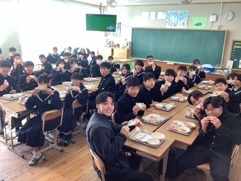 献立したじ飯、牛乳、煮酢あえ、ニギス団子汁、西尾抹茶大福今日は、愛知を食べる学校給食の日の献立でした。西尾市のいろいろな地区で古くから食べられてきた三河の郷土料理が出ました。特にしたじ飯は大人気。生徒たちは笑顔で頬張っていました。
