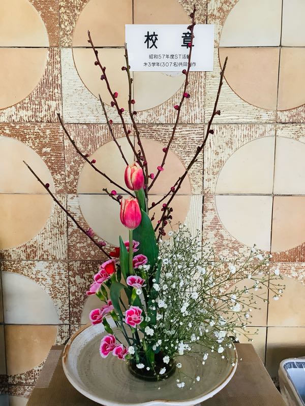 今日の花桃、チューリップ、カーネーション、かすみ草チューリップの花言葉は「思いやり」です。3年生のみなさんは、卒業まであと一ヶ月ですね。利他共生、相手を思いやる心を大切に、仲間との時間を過ごしましょう。
