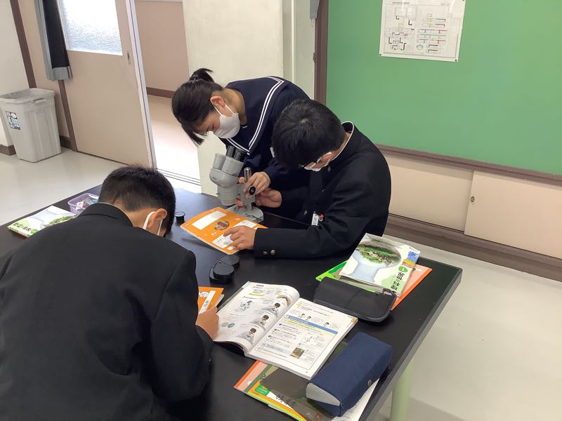 初めて使う双眼実体顕微鏡に興味深々。操作に手こずりながらも見えた時は大喜び。鉛筆や消しゴムのカスなどがどう見えるか、相談しながら、いろいろと試した一時間でした。