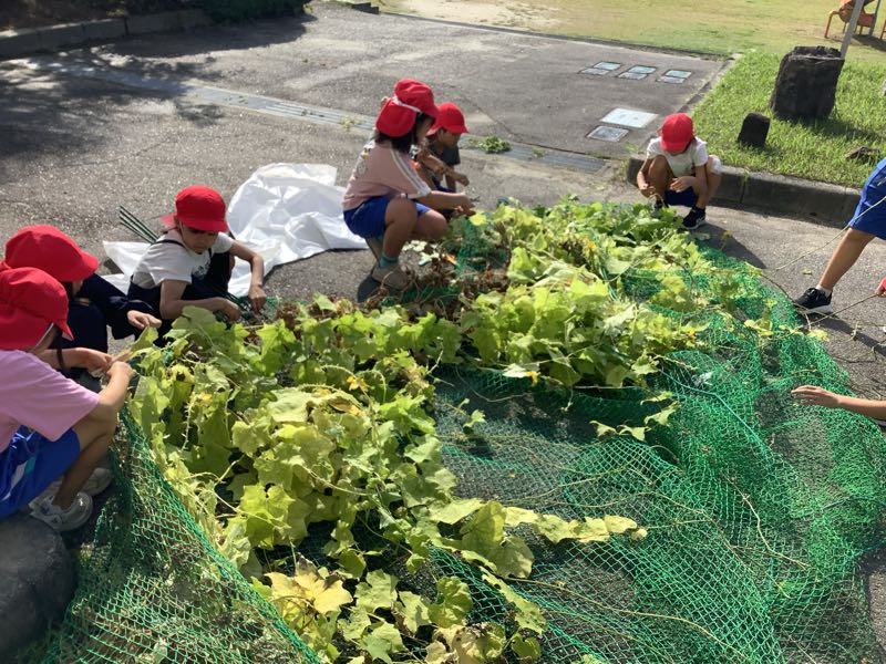 今まで観察をしていたへちまの片付けと排水機場の見学を行いました。春から秋にかけてどのように変化をするのか学ぶことができました。へちまさん、いままでありがとう!