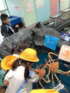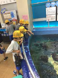 2年生のみんなでバスに乗って校外学習に行きました。行き先は竹島水族館と子どもの国です。水族館ではアシカショーを見ました。子どもの国では、お家の人に用意してもらったお弁当を食べた後、外遊びをしました。
