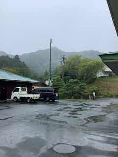 天気は雨です。昨日とは違う山の景色が広がっています。