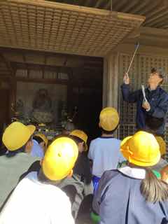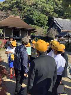 地域にある金蓮寺を見学に行きました。その建築された時期や建築様式について解説を受けながら実物を見ました。国宝に指定される文化財が校区にあることを学びました。