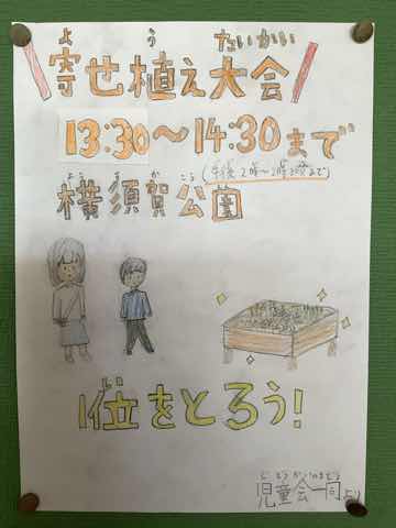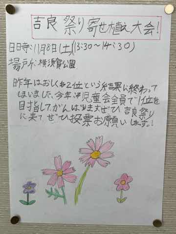 本日、学校できらまつりのチラシを配付しました。明日と明後日、子どもたちも楽しみにしているきらまつりがあります。明日の寄せ植え大会に向けて、児童会の子どもたちが、花壇のデザインや花材を考えたり、本番に向けて仕事分担の打ち合わせをしたりして、準備を進めてきました。悲願の優勝をめざして、気合い十分です。寄せ植え開始は明日の13:00〜、一般投票は13:30〜14:30頃です。荻原小の花壇に、励ましの一票をぜひお願いします。