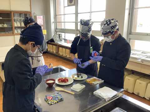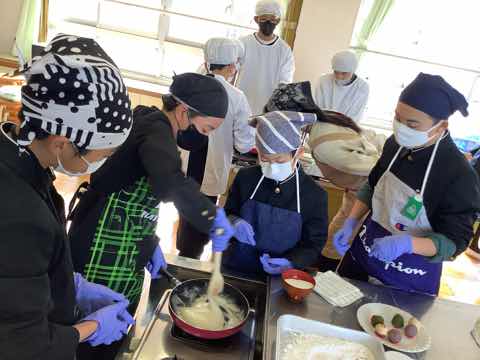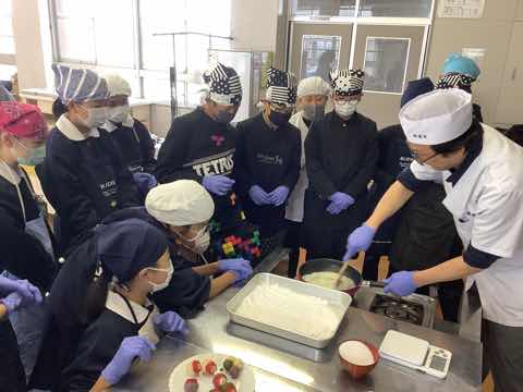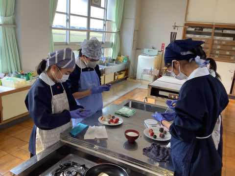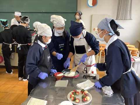 6年生は、西尾市にある「穂積堂」の4代目鈴木雅也先生を講師にお招きして、地元産のいちごを使った、いちご大福作りをしました。