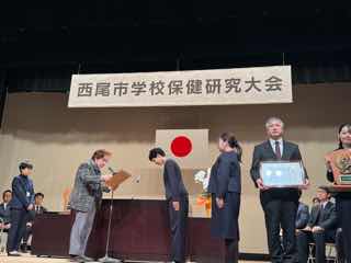 昨年度より西尾市学校保健研究会より委嘱を受けアウトメディアについて教育実践を行ってきました。その取り組みを西尾市学校研究大会にて発表を行い、表彰を受けました。