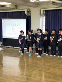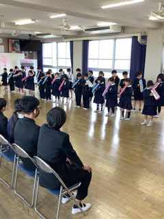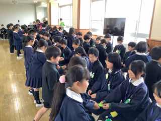 卒業を控える6年生に全学年がありがとうを伝える6年生を送る会を行いました。各学年から歌やエールが6年生に贈られました。最後に6年生のバトンを5年生が引き継ぎました。卒業式まであとわずかになりました。残りの日々を大切にしようという気持ちをみんなが高める素敵な時間になりました。