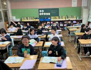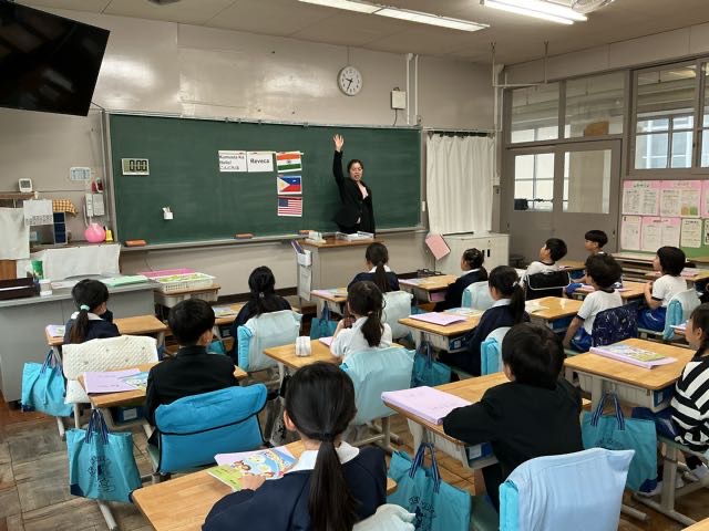 3、4年生では、今日から外国語活動が始まりました。