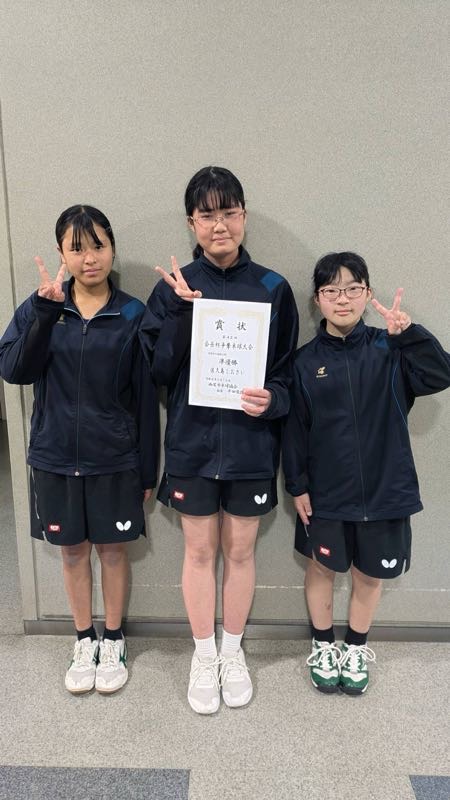 今日は西尾市総合体育館で会長杯争奪卓球大会が行われました。中学女子団体2部に出場して準優勝を獲得しました。三人とも頑張りました。