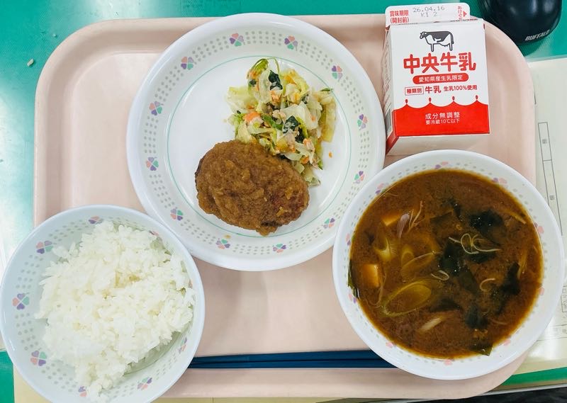 献立ご飯、牛乳、おろしハンバーグ、ツナキャベツサラダ、豆腐とわかめのみそ汁今日から1学期の給食開始です。登校時に「今日はハンバーグだよね?」と楽しみにしている子もいました。給食時間にはおかわりをする子の姿も見ることができました。元気なスタートを切れたようです。
