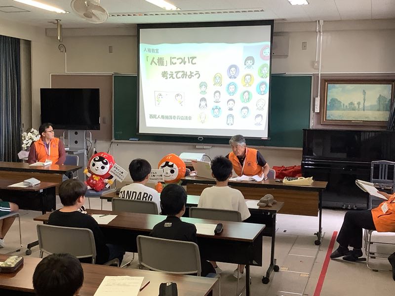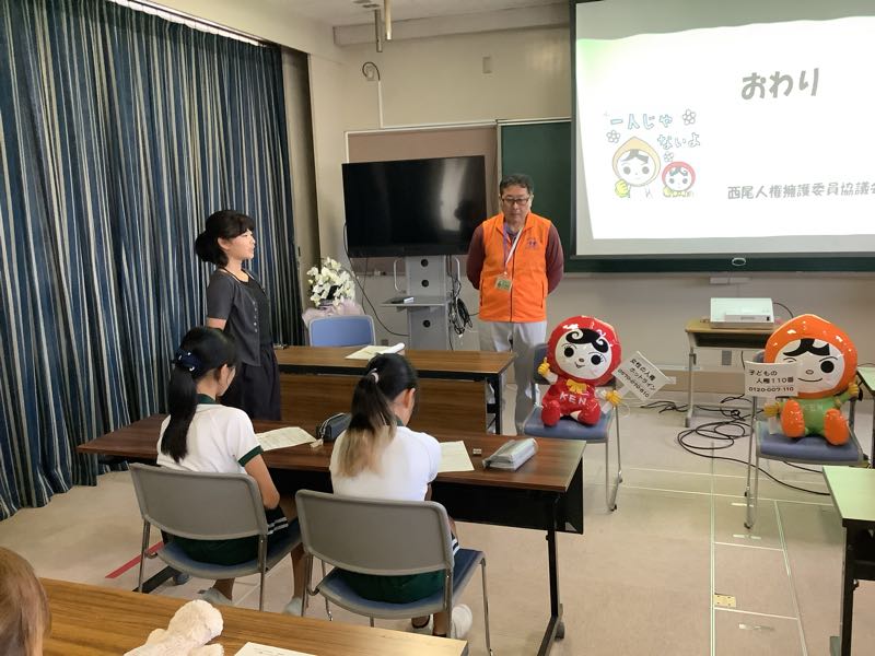 6年生は人権教室を行いました。人権擁護委員の方からお話を聞き、人権について考えました。また、4年生は社会の授業で分別スクールを行い西尾市のゴミ処理について学びました。ゴミ収集車が来て、市の方と一緒にゴミの分別について確認しました。